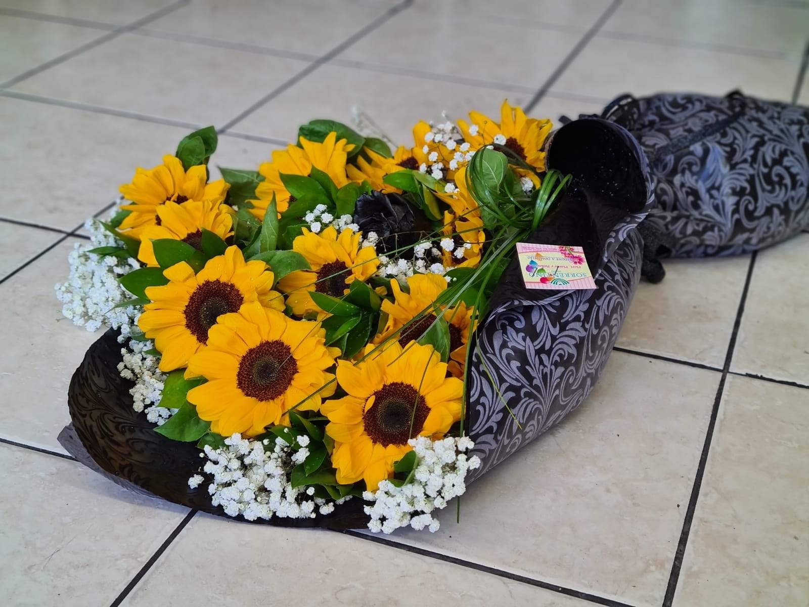 Splendido fascio di Fiori Recisi di girasoli confezionamento nero....