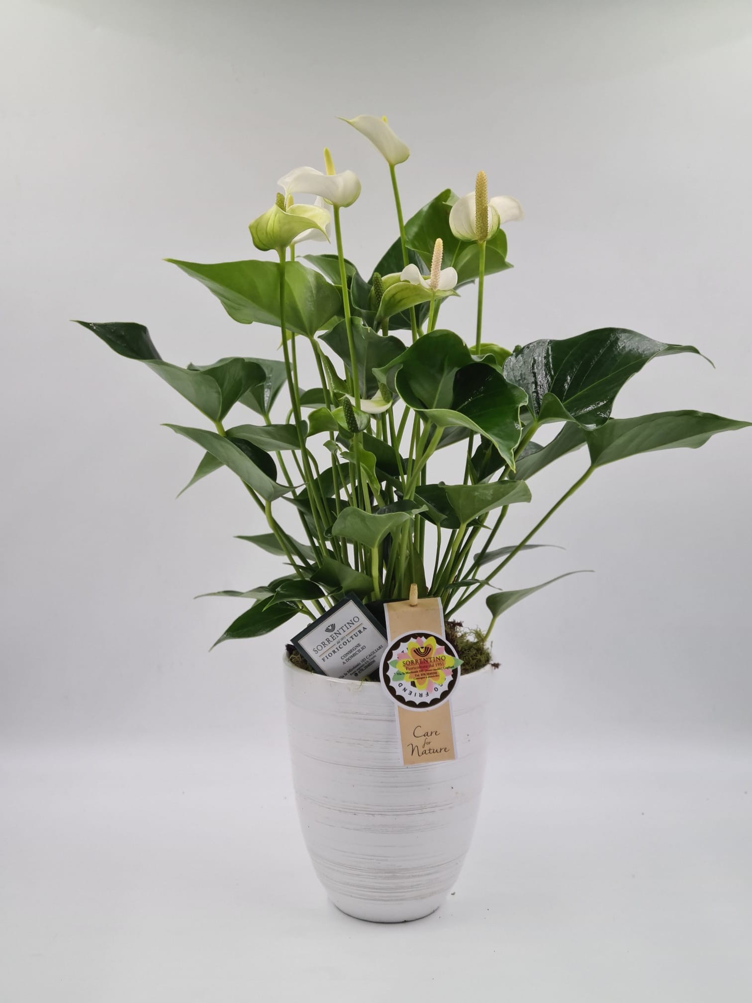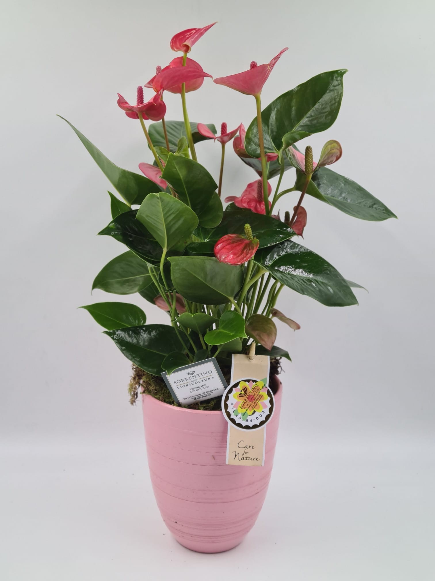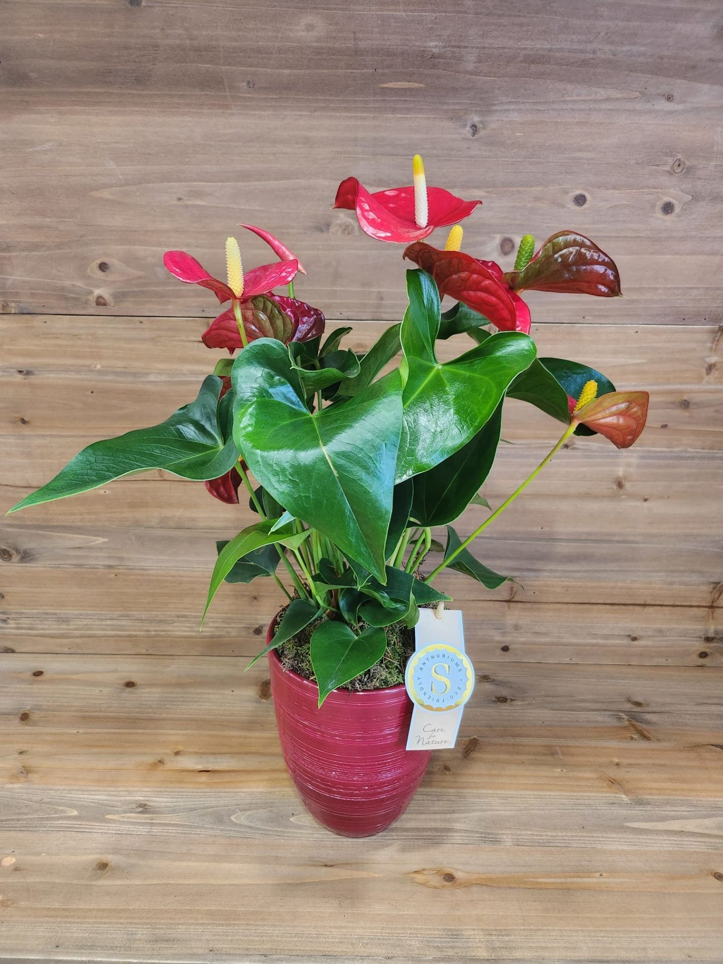 Anthurium su Elegante Vaso in Ceramica, altezza 55cm, diametro 14cm