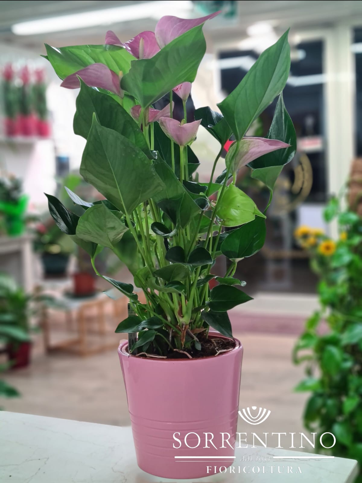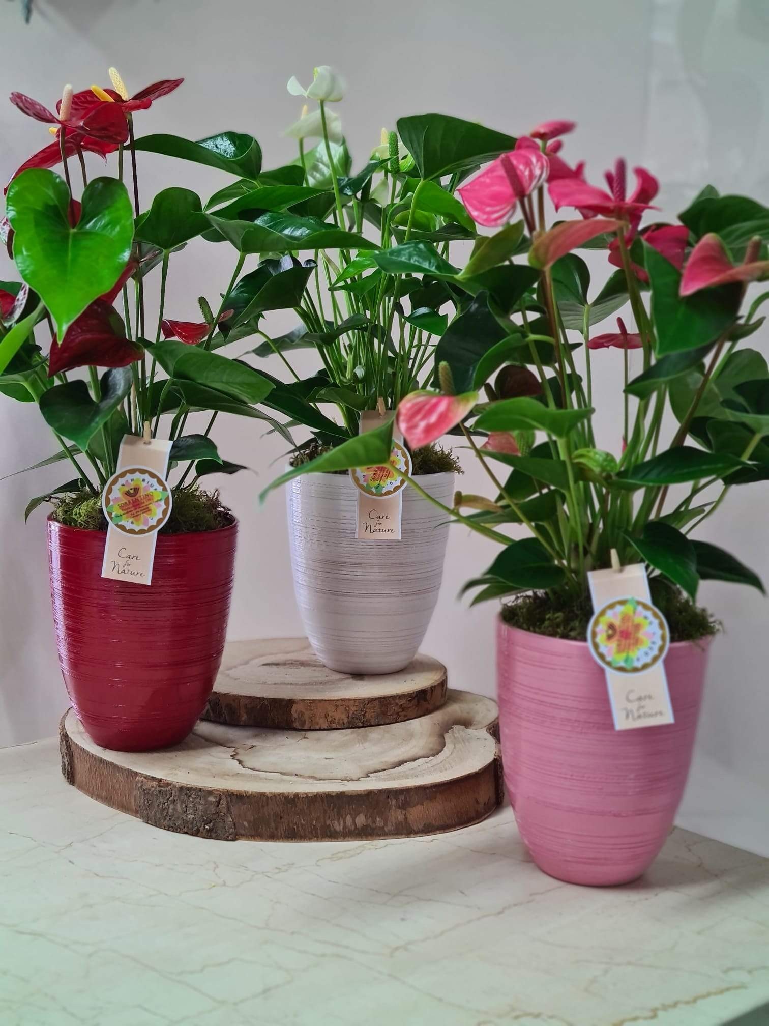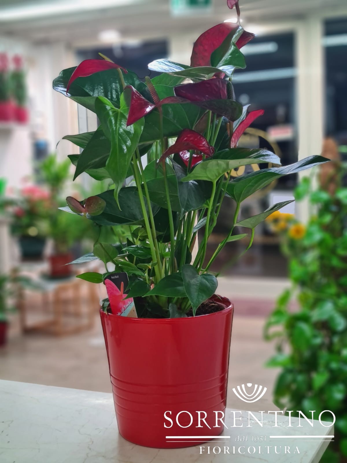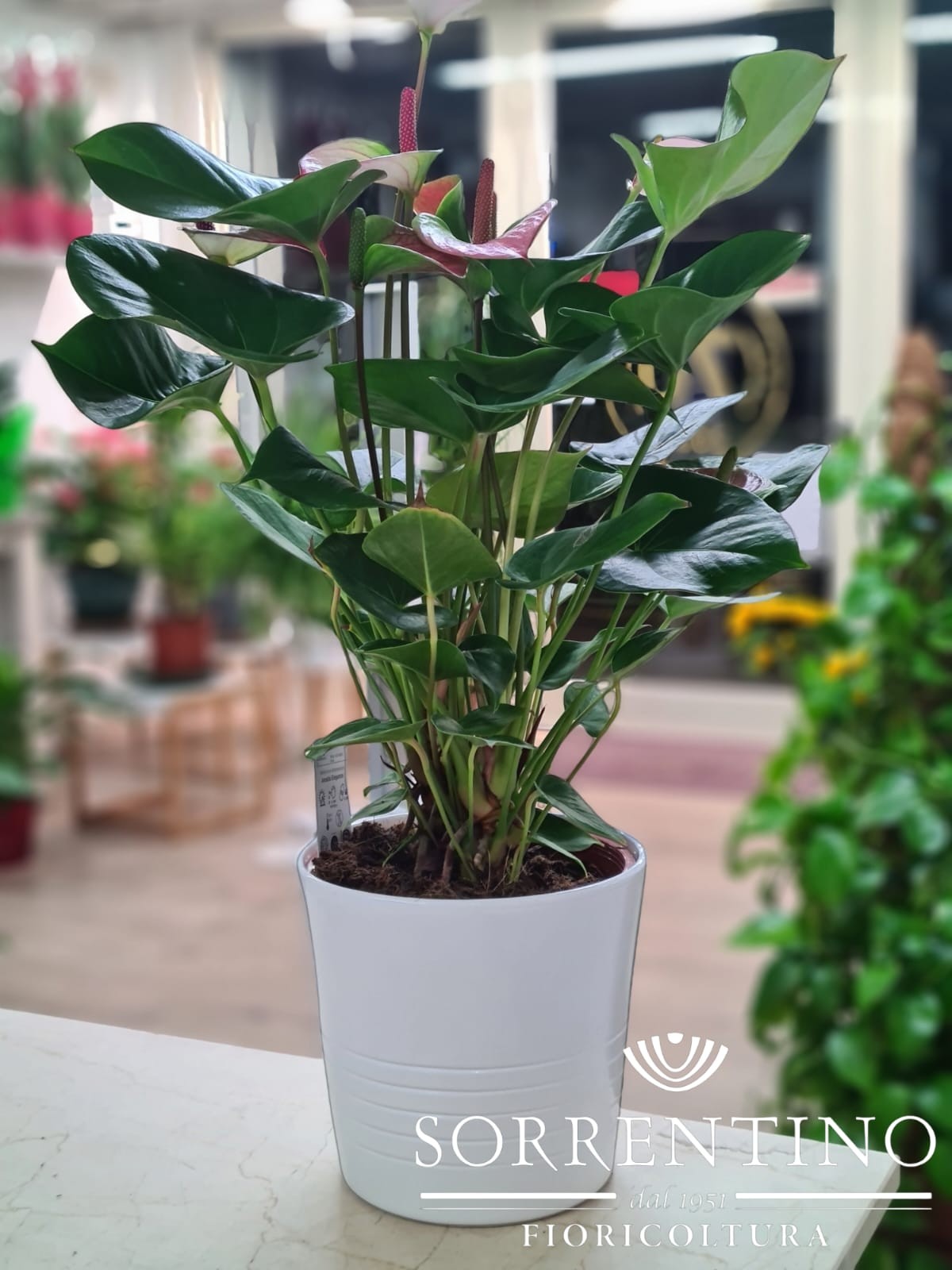 Anthurium su Elegante Vaso in Ceramica, altezza 55cm, diametro 14cm